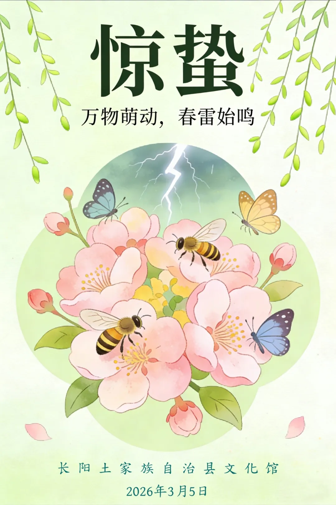 惊蛰,是二十四节气中的第三个节气。惊蛰反映着自然界生物受节律变化影响而萌发、生长的状态。时至惊蛰,阳气上升、气温回暖、春雷乍动、雨水增多,万物生机盎然。农耕生产与大自然的节律息息相关,惊蛰节气在农耕上有着相当重要的意义,它是古代农耕文化对于自然节令的反映。